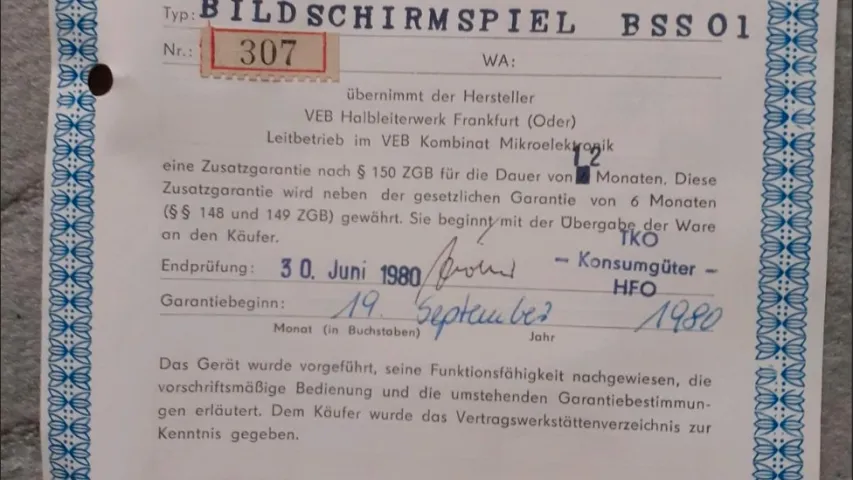 Original-Anleitung, sehr gut erhalten; Garantieurkunde in sehr gutem Zustand