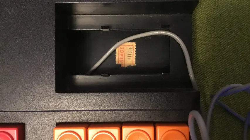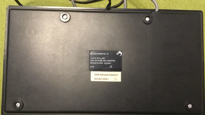 Keine Gebrauchsspuren und vierte hergestellte Konsole. Kein Umbau auf moderne Technik. Absolut original. Einlagekleber hat sich nicht gelöst. Bei dieser frühen Variante wurde noch ein zusätzlicher Aufkleber angebracht, auf welchem davor gewarnt wurde die Konsole vor Feuchtigkeit zu schützen. Später und zu 99% wurde der schwarze Kleber inkl. aller beiden Warnungen gedruckt.